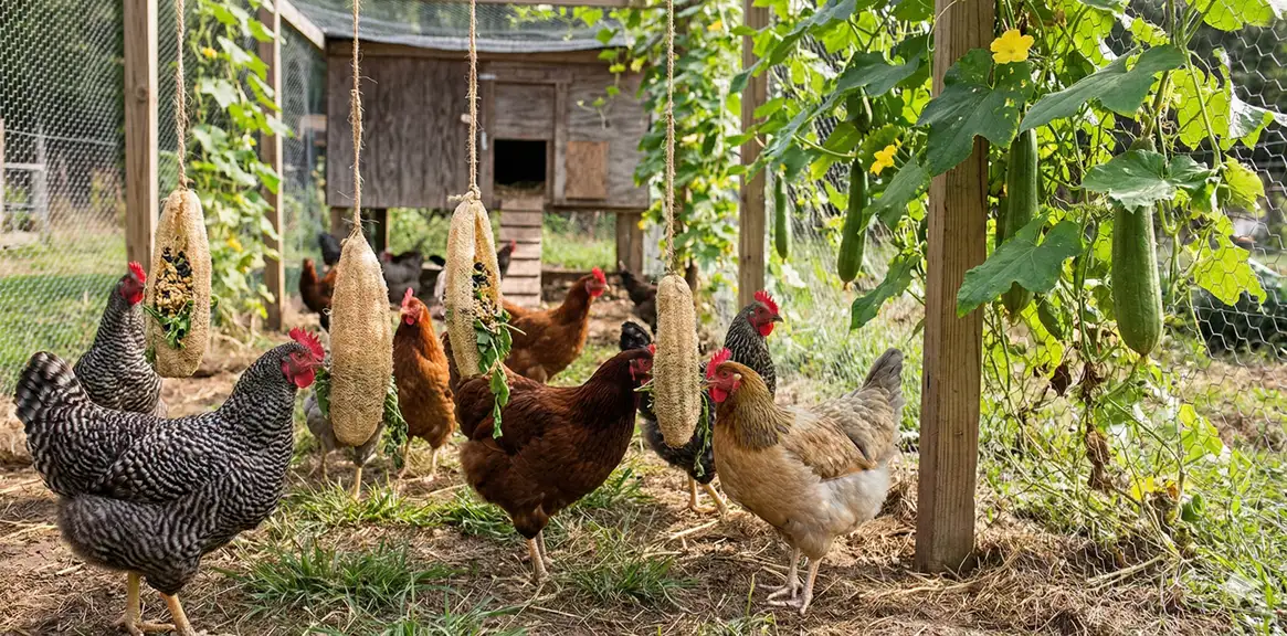 Bored chickens are unhappy chickens, and boredom often leads to destructive or aggressive behaviors. Loofah enrichment keeps your flock mentally engaged by providing a novel object to investigate and interact with. Chickens will approach hanging loofahs with curiosity, testing them with their beaks and learning how they move and respond to pecking.