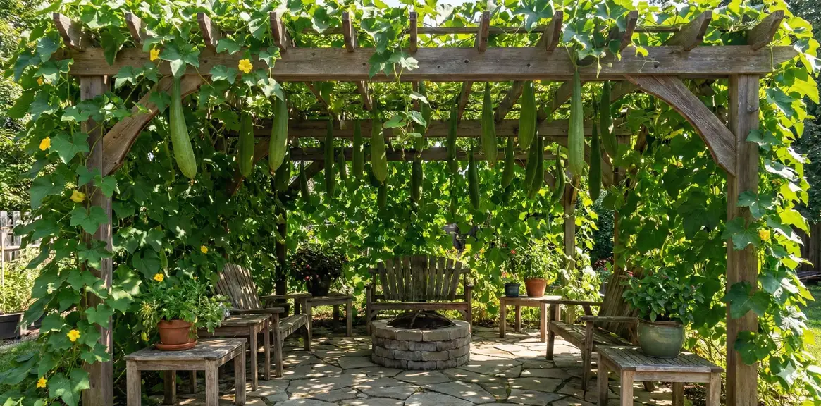 Transform your outdoor space with living loofah shade structures that provide natural cooling while growing your own sustainable sponges. Loofah vines (Luffa aegyptiaca) are vigorous climbers with broad leaves that create dense, attractive shade coverage perfect for pergolas, arbors, and garden structures. Learn more about growing vigorous vines in our complete guide.